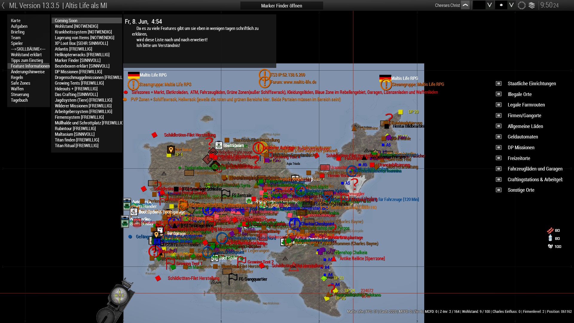 - Feature Informationen -> Hier werden nach und nach ALLE Features erklärt - Ist eben der komplexeste Server Deutschlands...