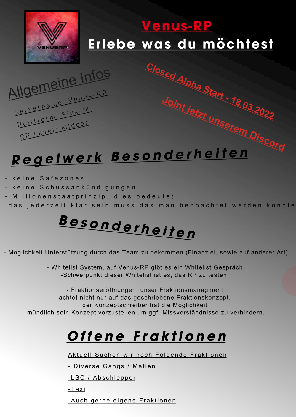 Da es so viele Server gibt, stellt sich die Frage wieso Venus-RP der Richtige Server sein soll?