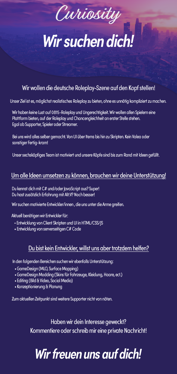 • Curiosity sucht neue Teammitglieder! | Alt:V