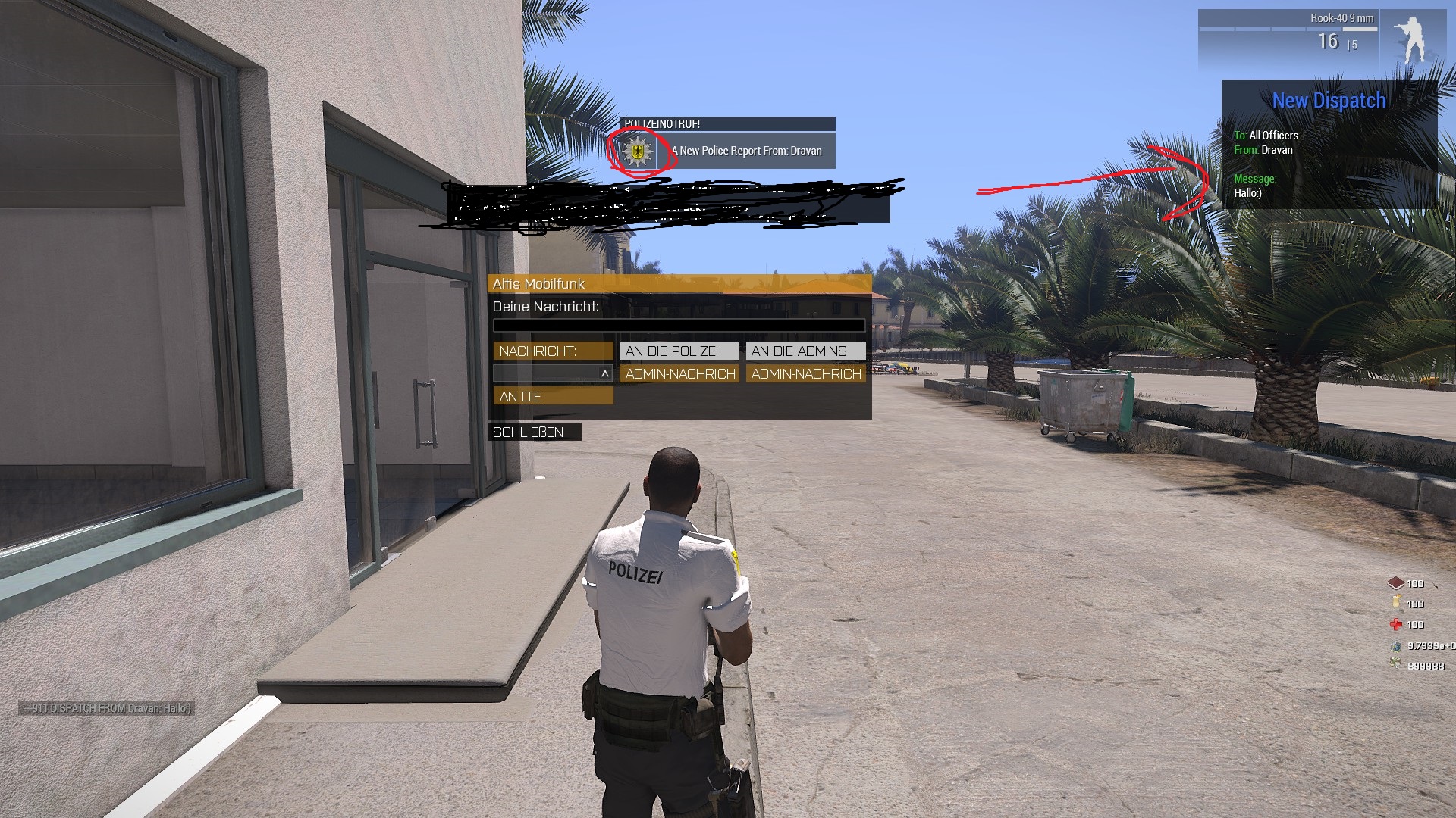 Ich bin gerade dabei die Nachricht an alle für Cops und Medic einzufügen...