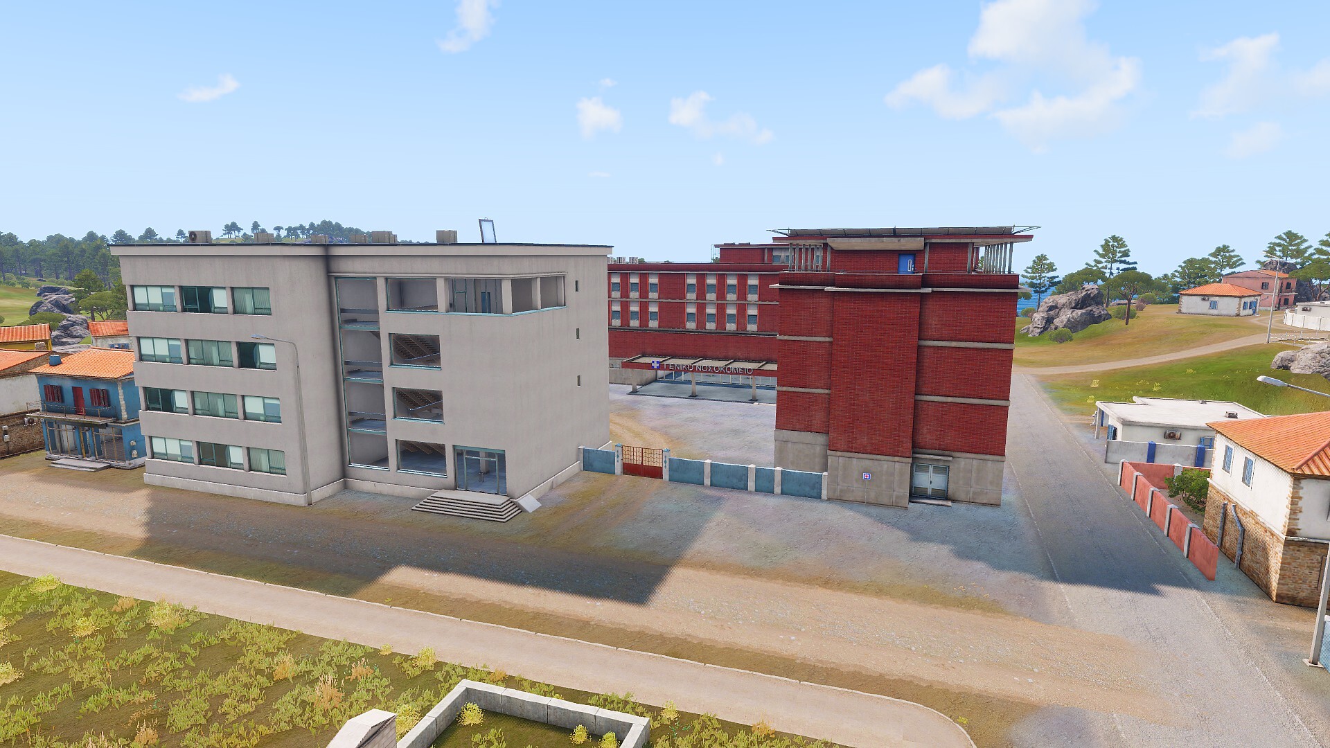 Krankenhaus, Polizei Außenposten, Polizei HQ u.s.w