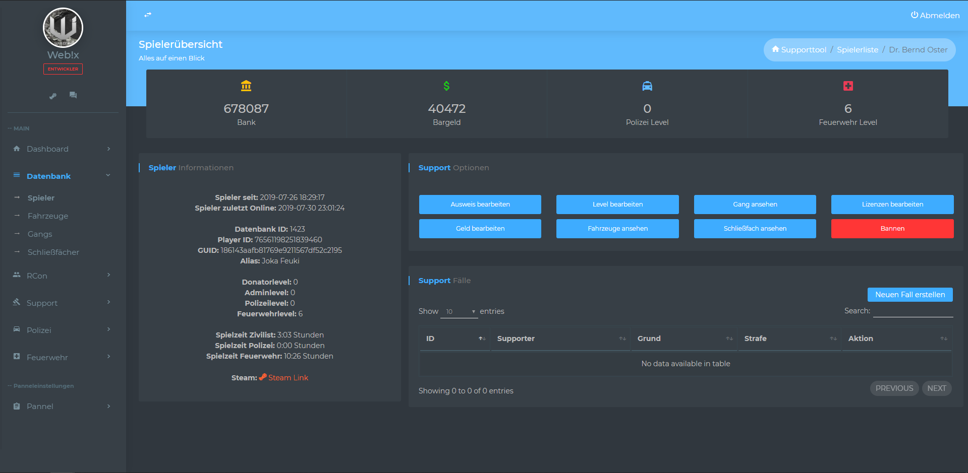 • Support Tool Spieler Seite [WIP]