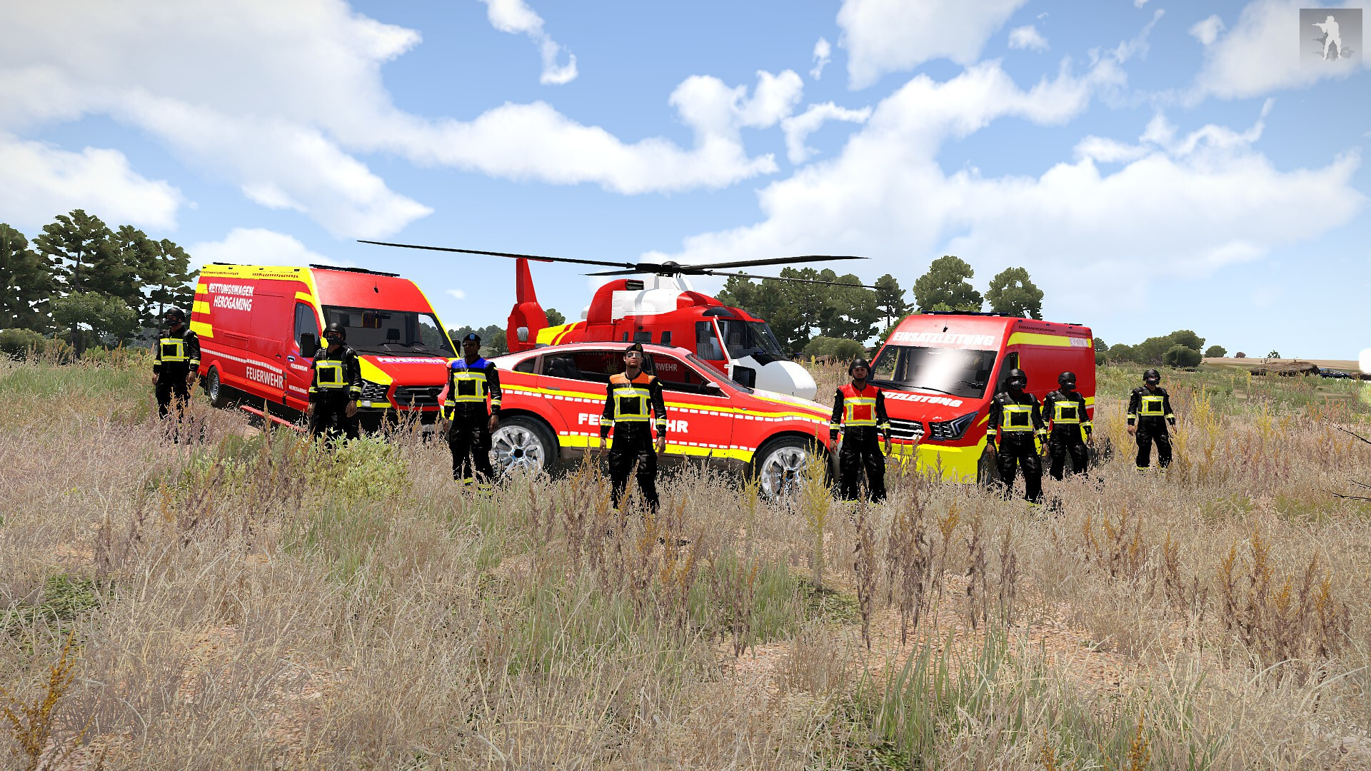 Ein Feuerwehrskinpack mit -SUV -Transporter (RTW) -Transporter (ELW) -Orca -Hummingbird -MH900 -Unifmorm: Normal, Leitung, Ausbilder und Einsatzleitung