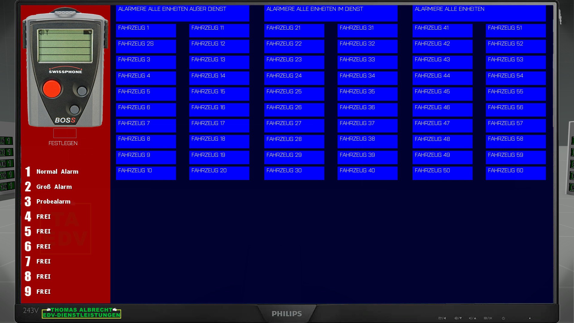Links kann man mit 1-9 den Ton der Alarmierung ändern um auch eine akustische Trennung zwischen z.b. Probe und Einsatz zu haben.